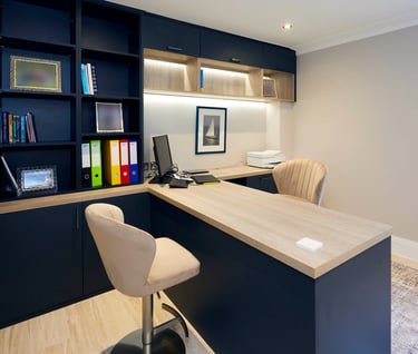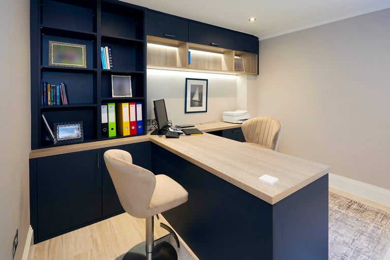 Not only do home office provide more storage and display space, they also provide the perfect place for undermount lighting for your work surface. Whether you’re adding glass or wire inserts, open shelves or solid wood doors, built-in uppers are a practical and beautiful storage solution.