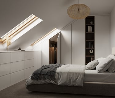 We custom design our Attic & Dormer wardrobes to make the most of those challenging spaces in your home. Whether you have a sloping ceiling or limited headroom, our wardrobes are crafted to utilise every inch of available space. With clever storage solutions and customisable features, our wardrobes provide a practical and stylish storage solution for your attic or dormer.
