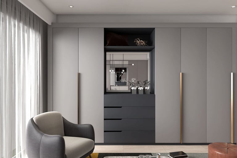 Our hinged wardrobes are a classic choice for those who appreciate timeless design and functionality. With doors that open outwards, these wardrobes offer full access to your storage space, making it easy to organise and access your belongings. Available in various designs, finishes, and sizes, our hinged wardrobes can be customised to suit your specific needs and preferences.